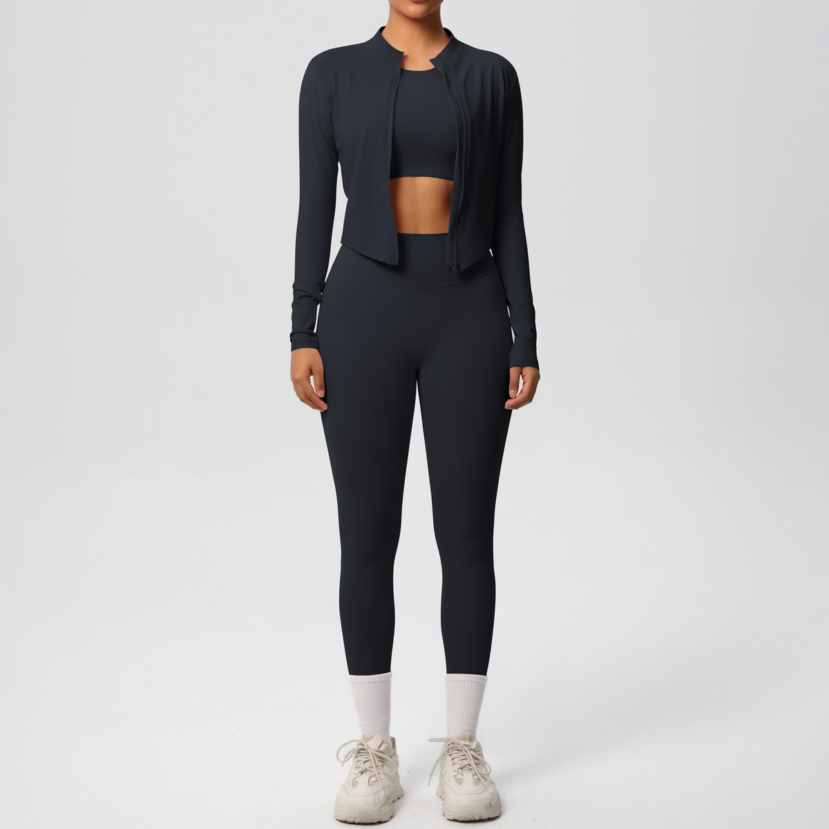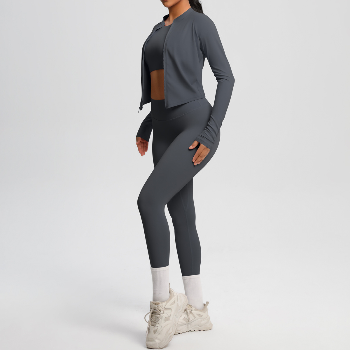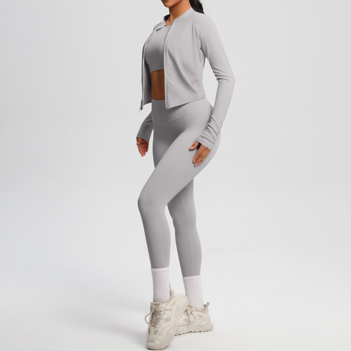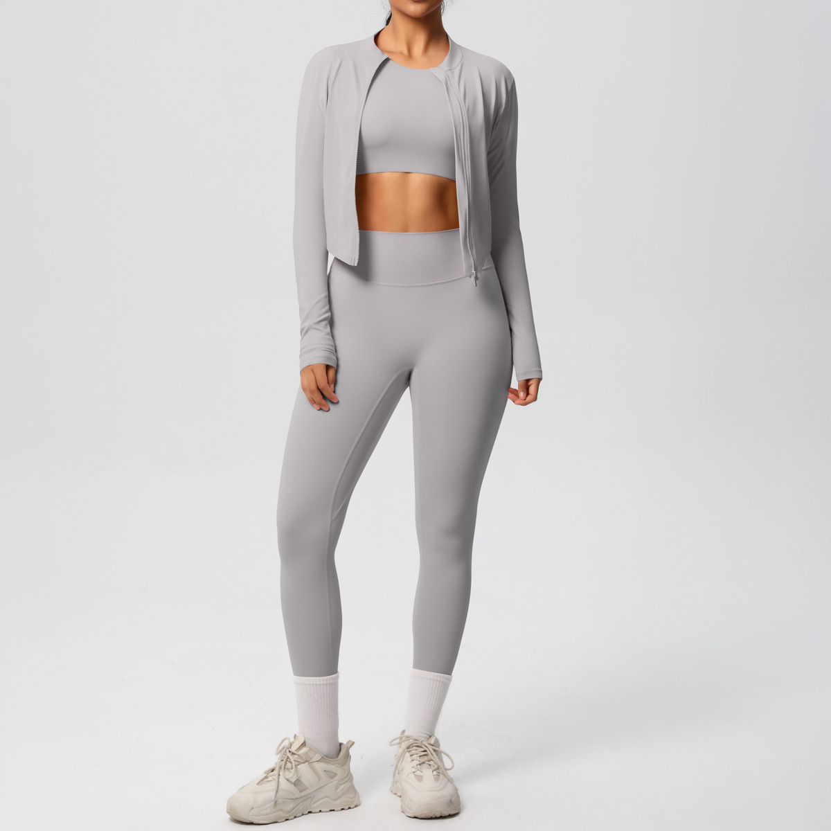 Breathable, Form-fitting Workout Jacket And Three-piece Set