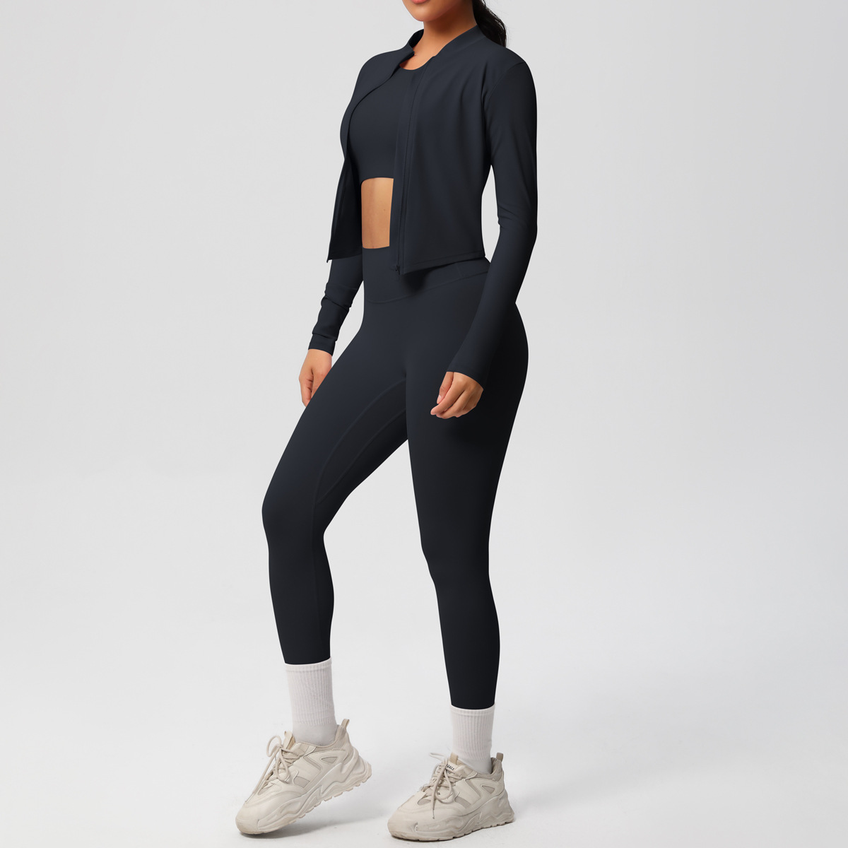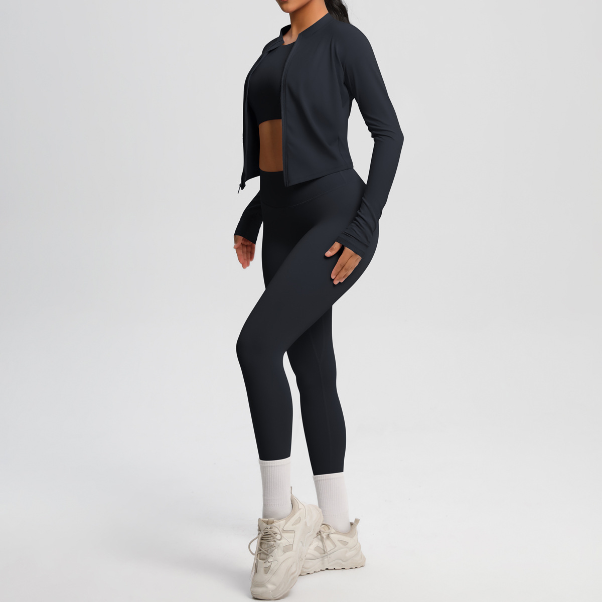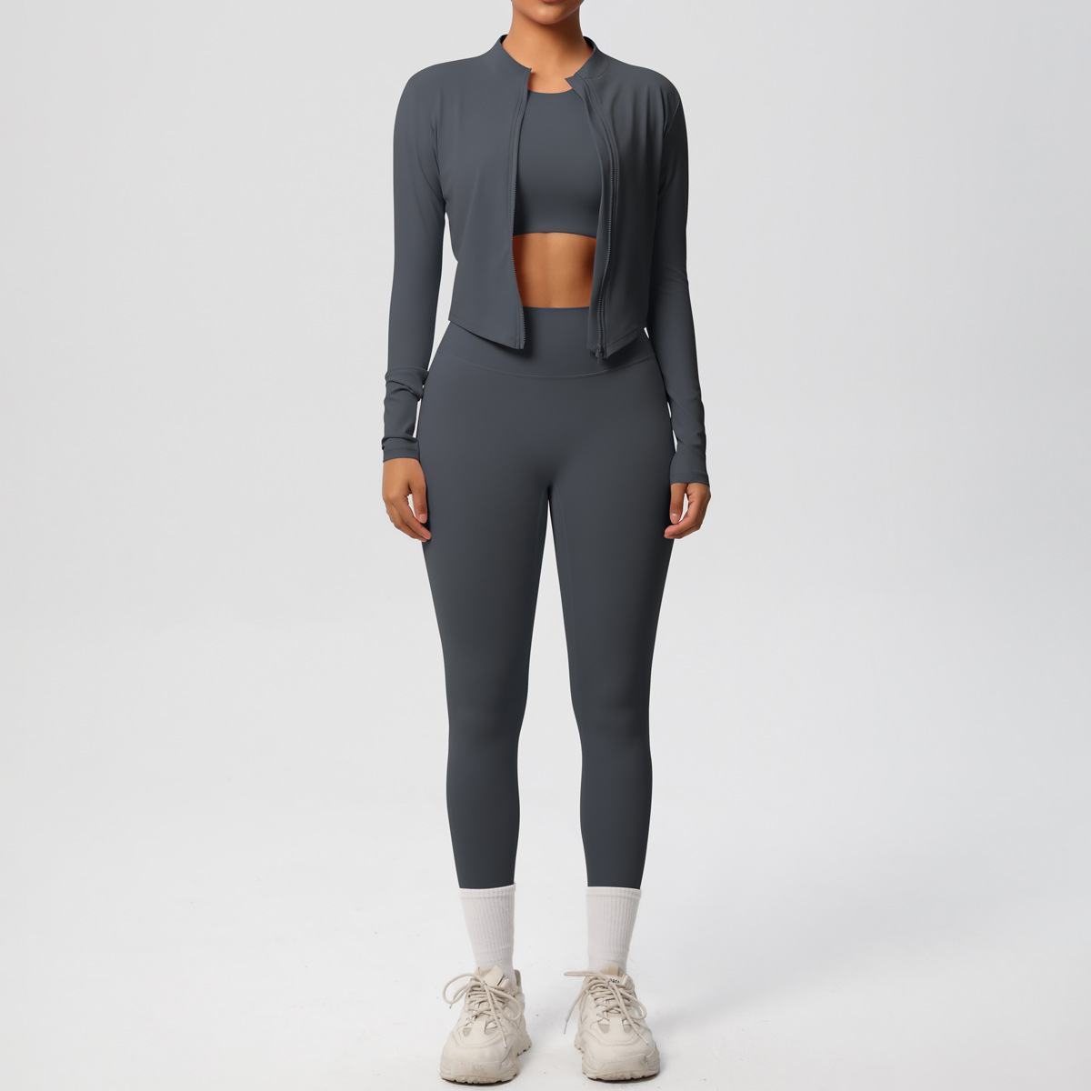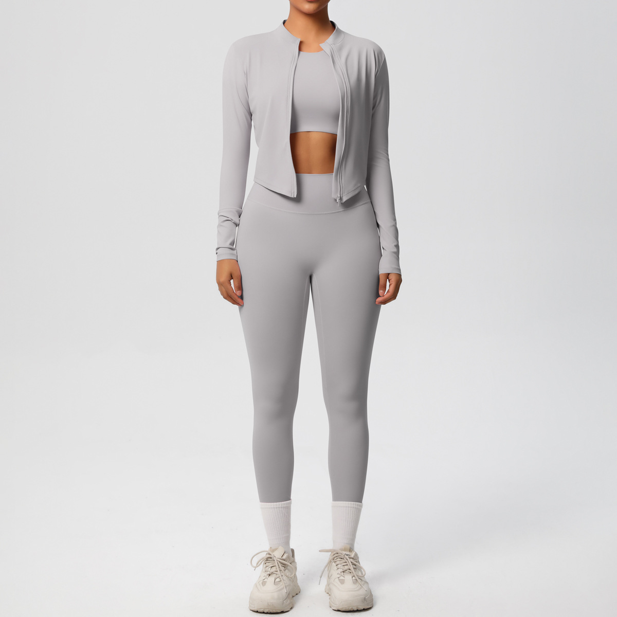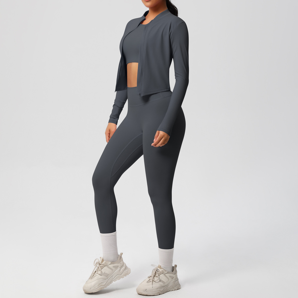 Breathable, Form-fitting Workout Jacket And Three-piece Set