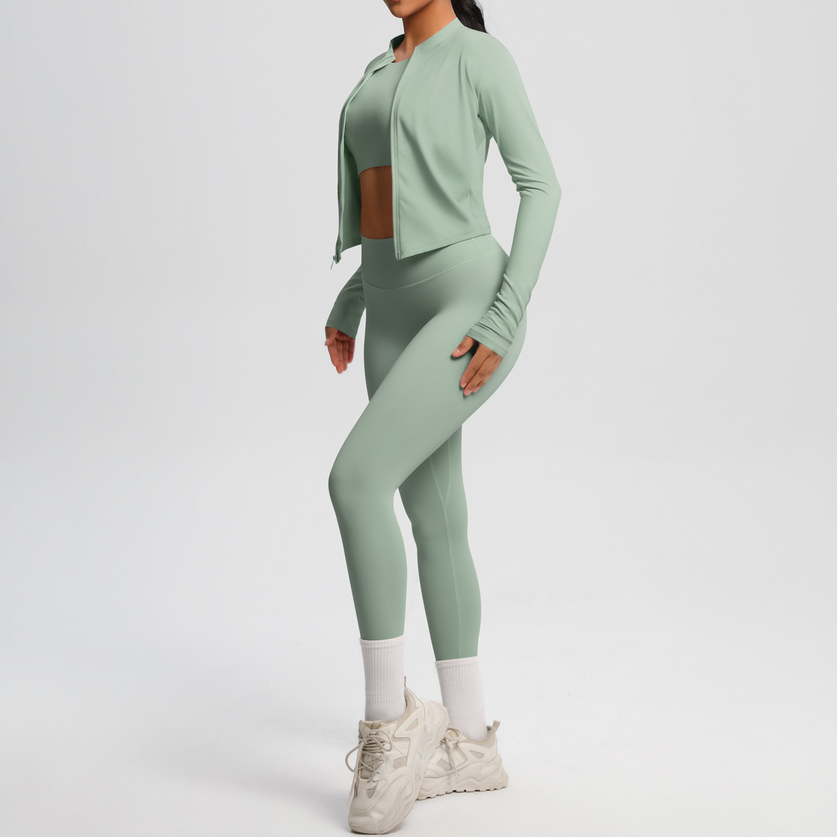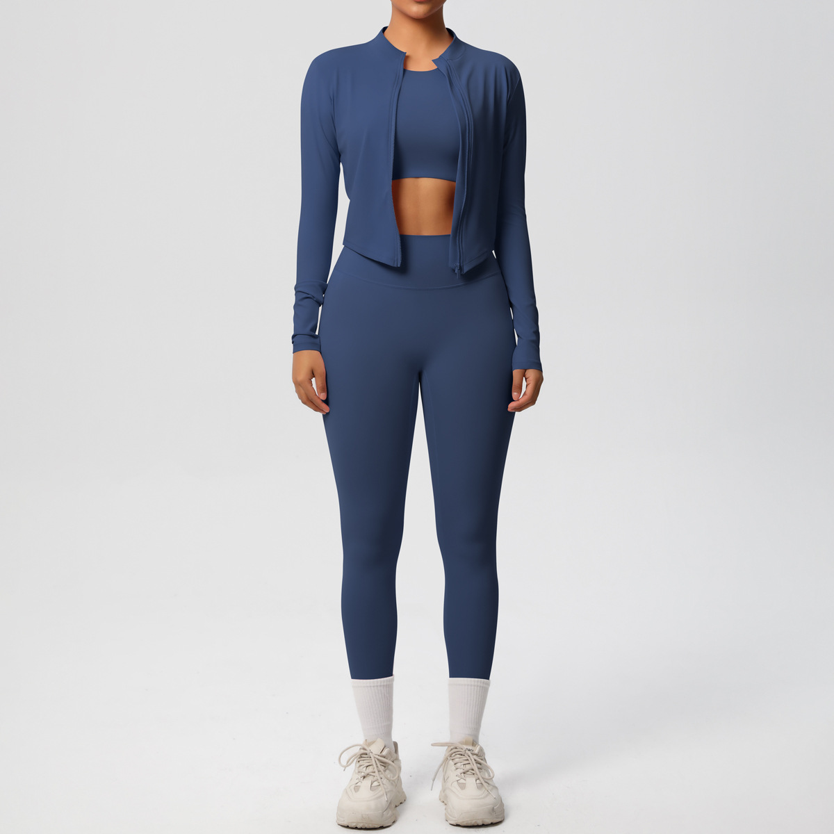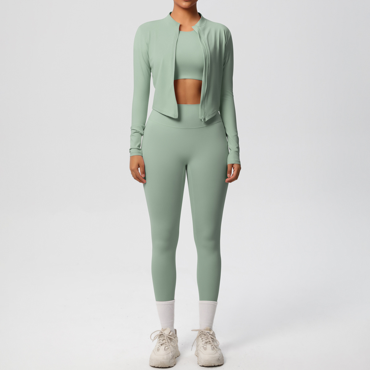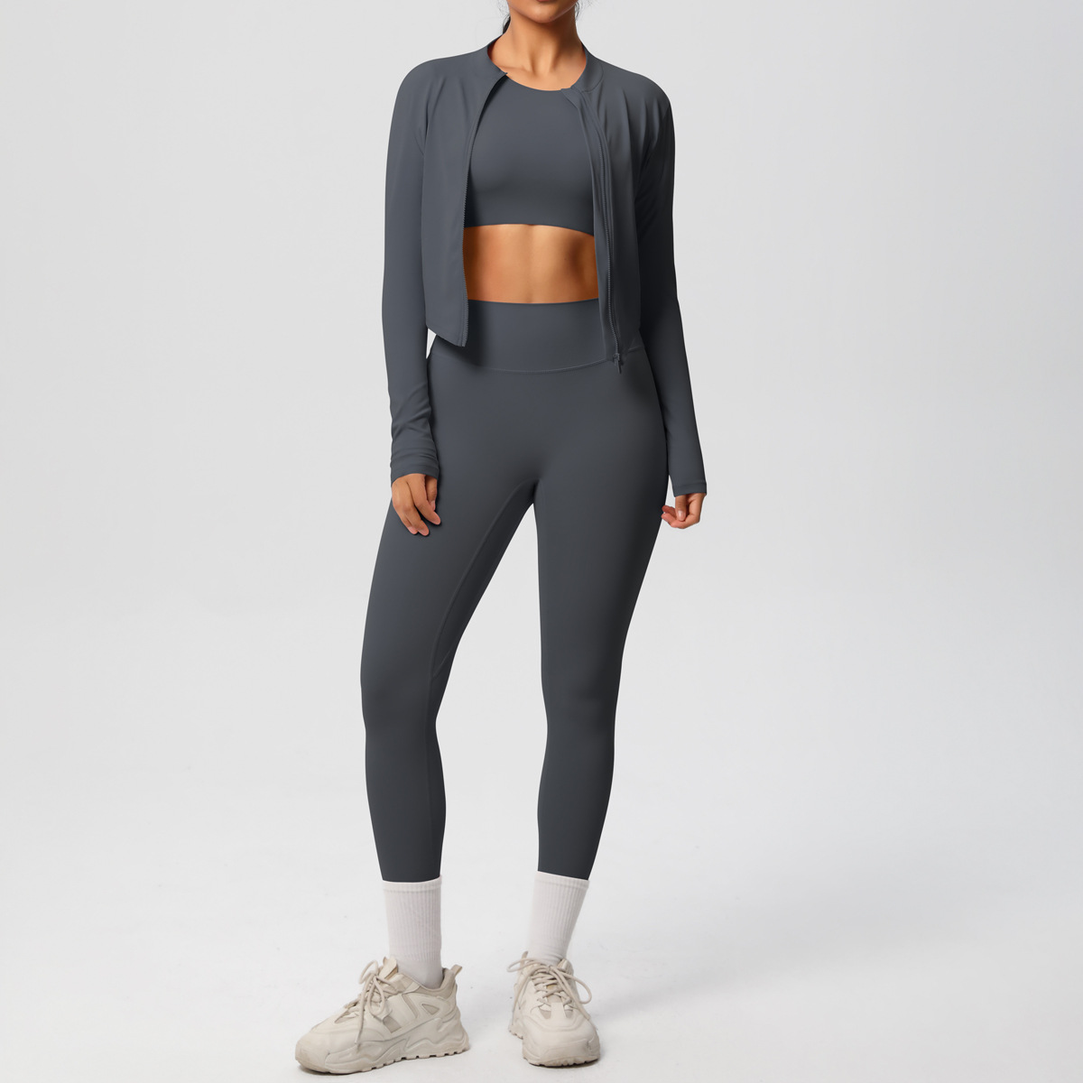 Breathable, Form-fitting Workout Jacket And Three-piece Set